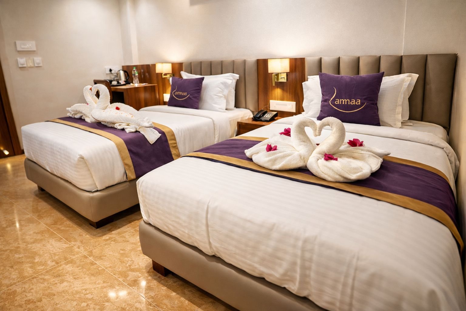 Our Twin Room is designed for guests who prefer separate sleeping arrangements without compromising on comfort. Featuring two comfortable twin beds with premium linens, the room offers a cozy and inviting atmosphere.